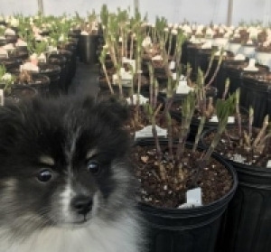 Bear loves to spend time with us both playing outside and as we work in the greenhouse. He is so much fun to play with, but it’s not an easy job to keep him safe. He loves to chase dry leaves in the yard and un-transplant the seedlings in the greenhouse. They are exactly at his mouth height. Several petunias have already come out the loser.