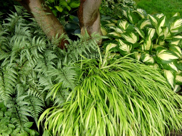 Ornamental grasses have a fine texture and unique form that blends gracefully with the plethora of daisies and other summer flowers. In the fall, their lovely seed heads play so well with sedums, asters and solidagos. Most often though, the switchgrasses (Panicum), Pennisetums, and Miscanthus are best suited for full sun. When planted in shade they tend to be floppy, not bloom as well and lose their variegation or reddish foliage.