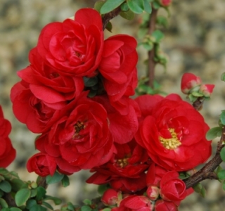 I’ve gotten a lot of branches of flowering quince, Chaenomeles speciosa, in the last few days. It is kind of an old-fashioned shrub often seen in the borders of old farm houses. They get quite tall and twiggy in the center. There is a huge specimen on Little Britain Road just below Fairmount with bright scarlet flowers that slows my car down as I drive past.