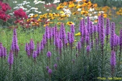 Liatris is a tall perennial with a long blooming stem and season. Normally, they are in the purple range. They will form a nice clump over time. There are several sizes to pick from.