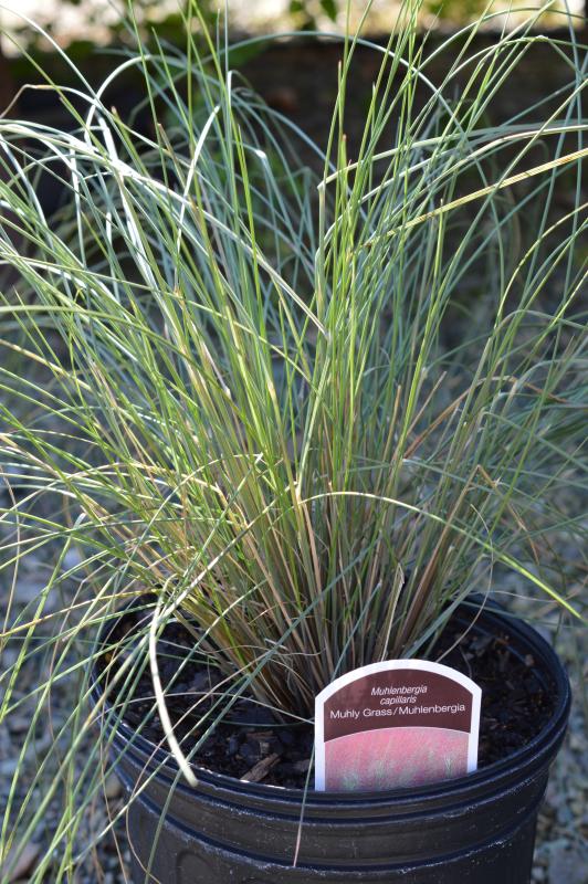 Native grass from US southwest. Plant with slender foliage that is nondescript until fall bloom of pink airy flowers. Best in sunny, dry, sandy soil. Will tolerate light shade. Literature is conflicting as to whether we are on the northern edge of its hardiness. Zone 6-9. Best massed to enjoy late summer show. Other dry sun loving plants for spring and early summer effect while you wait.