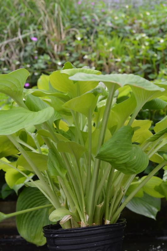 Award winner with large rounded seer-suckered, green-gold leaves that stay attractive all summer. Leaves deepen to gold as summer progresses in dappled shade. Easy to grow, long-lived plants. They perform best in a shady spot with evenly moist soil, but will do well in a shady dry spot if well mulched. Once established plants keep themselves weed free. Bold dramatic foliage plants for the shaded gardens. They leaf out rather late, leaving open spots in the early spring for bulbs or spring ephemerals like, shooting stars, virginia blur bells, merry bells, and snowdrop amemone. Use large hostas for specimen plants, medium hostas for groundcovers, and small leaves hostas for rock gardens or containers. Combine with ferns, lungworts, and woodland phlox, and hardy geraniums.