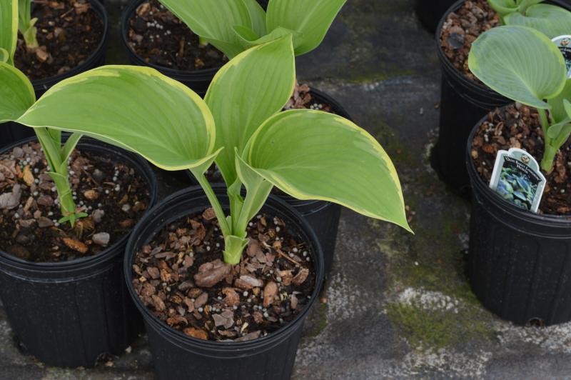Sport of Sagae with a wider more dramatic border. Thick, dark green leaves emerge with a wide yellow margin that fades to a creamy white later in the season. Long lived, easy to grow plants in filtered sunlight to full shade. Grows best in rich, moist soil but tolerant of dry shade. Zone 3-9.