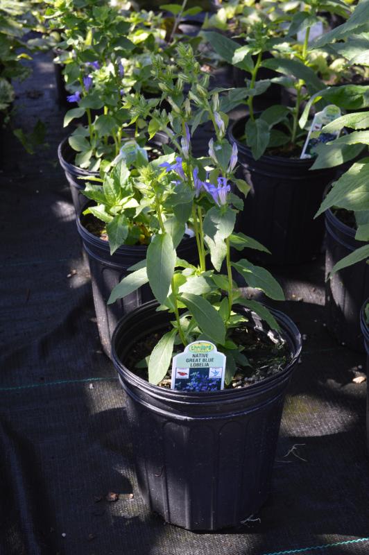 Easy to grow plant for late summer blue. Flowering spikes rise from a medium green rosette of velvety leaves. Attracts hummingbirds even though it’s not red. Allow to reseed. Tall spikes of blue tubular flowers. Adapts to any good garden soil in full sun or partial shade.  Zone 3-8. Plant in borders, wild gardens, moist meadows, and streamsides with red cardinal flower, yellow goldenrod, and joe pye weed. Deer Resistant.   Attracts Hummingbirds, Butterflies & birds. Beneficial for Pollinators