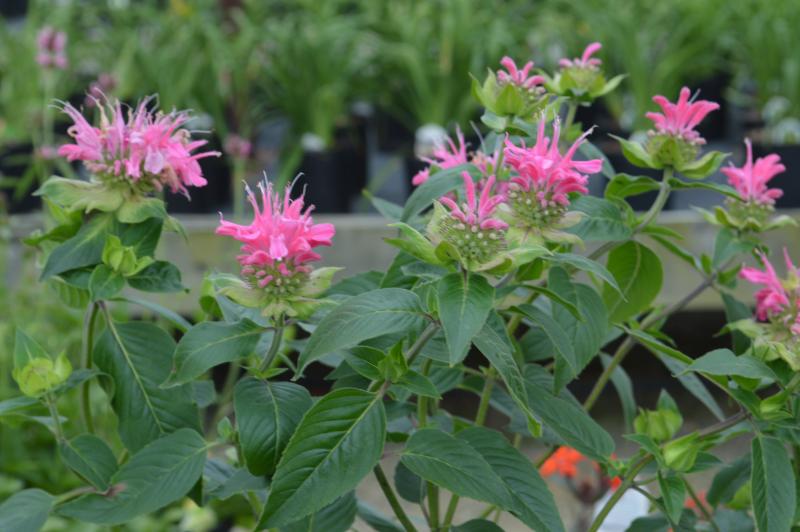 Bees, butterflies, and humming- birds love this plant, deer don’t. Forms upright, compact, sturdy clumps of four sided stems, with aromatic dark green leaves. Flowers at tips of stems. Full sun to part shade in moisture retentive soil. Mildew resistant variety. Plant in borders with Joe-pye-weed, shasta daisy, lady’s mantle, and hibiscus. Plants will form large colonies in meadow plantings or woods edge. Colorful plant for summer bloom in herb garden.