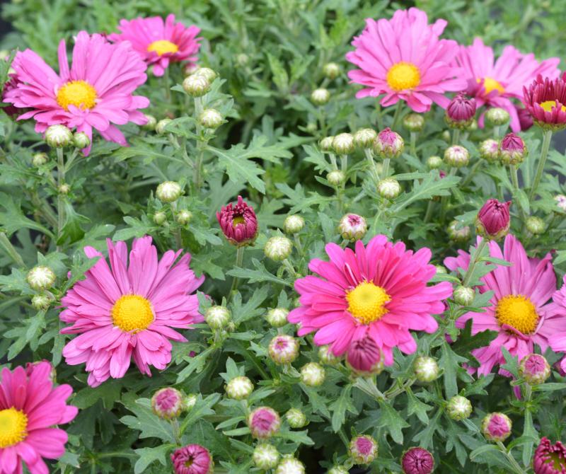 Excellent fall-blooming plant. Hardier than cushion mums and great fall cut flower. Prolific bloomer. Very easy care needing no pinching or pruning. Sun Tolerant in average well drained soil . Requires at least a half a day of full sun for best flowering. Heat Tolerant. Hardy to zones 3-9. May take several years to reach their mature height and width. Good fall container plant, fall blooming groundcover, or edging plant. Combine with fall blooming sedum, russian sage, ornamental grasses, and liatris microcephela or squarosa. Can be trimmed by 1/2 before July 4th, to improve habit.