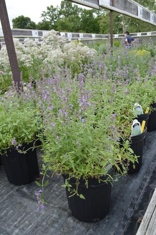 Prolific blooming, compact plant producing a close-to-the ground mound of well branched stems and dusty silver green, serrated leaves. Lavender spikes of flowers bloom all summer long. Well drained soil in full sun. Good for dry sunny sites. Zone 4-9. Useful for separating strong colors in borders. Very effective when used with stone walls or as an edging plant. Great in herb, wild or rock gardens. Plant with oenothera, coreopsis, garden phlox, yarrow, salvia, autumn joy sedum.