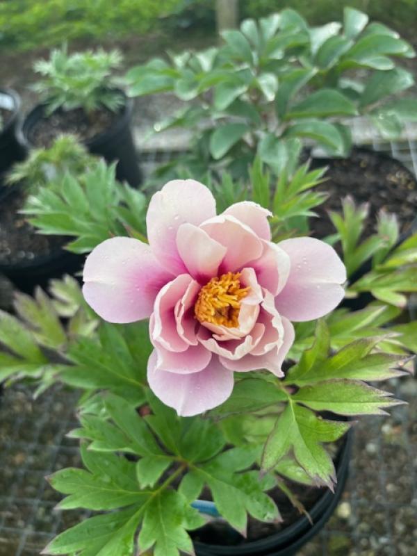 A cross between herbaceous garden peonies and woody tree peonies. Plant forms a sturdy clump of foliage 25-30â tall and wide that looks great spring through fall. Strong stems hold flowers upright even after heavy rain. Not particular about soil. Grow in full sun or light shade for best flower production. Mulch to keep roots cool and moist. Do not over fertilize. Leaf spots can be a problem if plants have too much nitrogen. Plant peonies in a row for a hedge or plant in sunny border. Plant with spring bulbs and their expanding foliage will shroud declining bulb foliage. Plant with Siberian iris, foxgloves, poppies, salvia, dianthus, rudbeckia, and daisies.