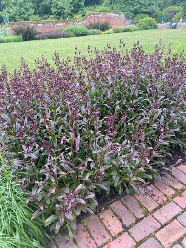 Clump forming plant with deep wine-red foliage that keeps its dark color throughout summer. In midsummer the plants explode with tall stems of tubular pink flowers. Does best when planted in full sun to part shade in average soil. Will tolerate high heat and humidity. A perfect dark background plant for the border. Plant with coreopsis, lamb’s ear, hardy geraniums, and veronica.