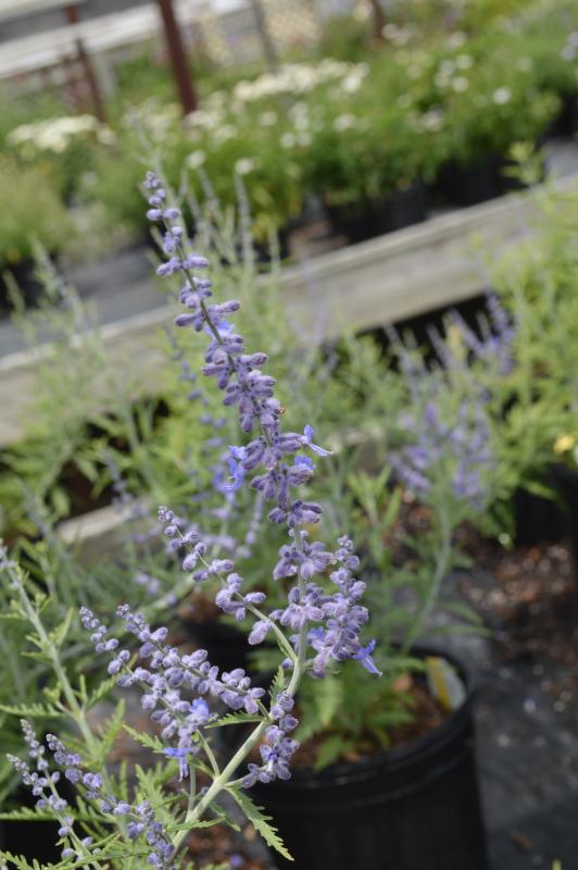 Denim and Lace has stronger stems and a more upright habit than most older varieties of Russian Sage. Plant in full sun in average to poor well drained, to even dry soil. Can be used as a herbaceous hedge, in the back of a mixed sunny border or in a cut flower garden. A great filler for the garden because its airy hazy look softens harsher colors. Plant in sun with daylilies, coreopsis, heliopsis, helenium, hibiscus, yarrow, salvia, boltonia, and rudbeckia.