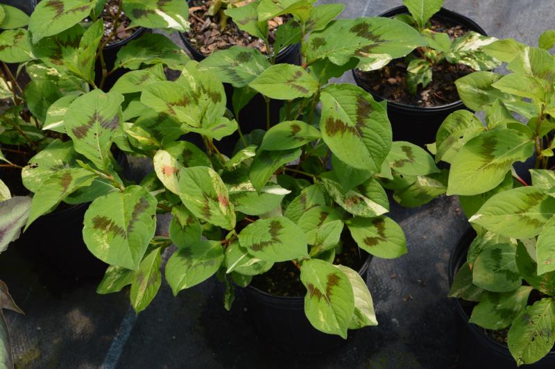 Nomenclature is undergoing some changes, but this is an interesting variegated foliage plant for the part shade garden. Nice massed as a groundcover. Plant in part sun to part shade in average to dry soil. Tolerates clay. Mounding red and green foliage plant to add interest to other greens.  Plant with purple-leaved heucheras, or geraniums.