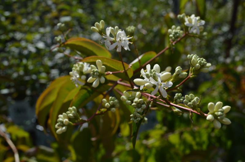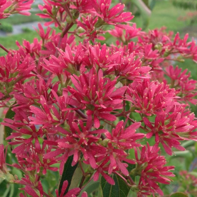 This tall arching multi-stemmed shrub with attractive peeling bark grows rapidly. Come late summer it fills your space with ornamental fragrant white flowers on seven tiered panicles. Then, after those flowers drop in early fall, what remains are the stunning red sepals and showy purple/red berries.