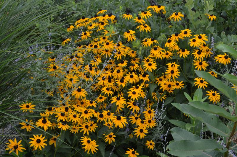 Dome shaped mass of golden yellow blooms. This variation is resistant the Septoria leaf spot. Seed pods make good winter interest. Excellent cut flower. Plant in full sun to part shade in moist to average soil. Tolerates heat well/ tolerates some drought once established. Naturalize in meadow garden or use in a sunny border with grasses, Siberian iris, boltonia, asters, and garden phlox