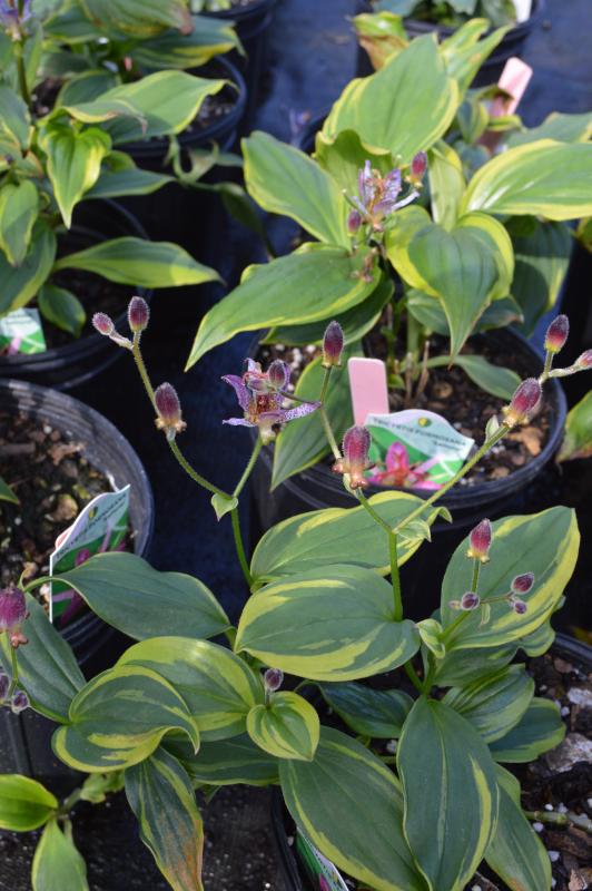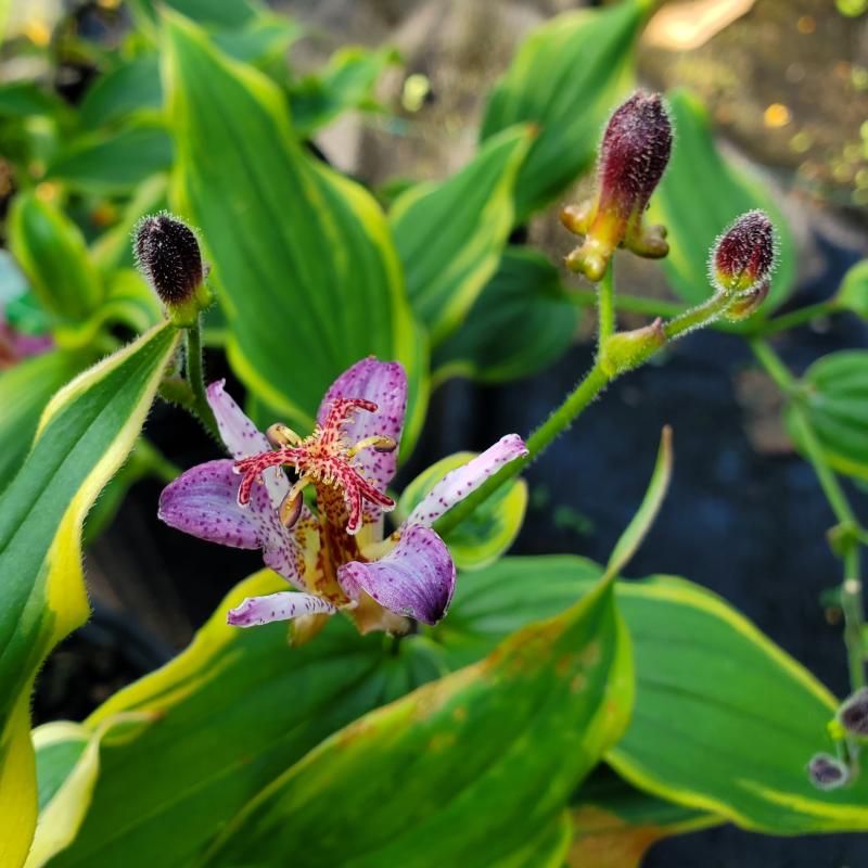 This fall blooming perennial features exotic, orchid like flowers in a gorgeous spotted purple color. The foliage is a shiny green with a showy gold margin. Plant in evenly moist, well drained soil in full to part shade. Deer resistant. Zone 6-8.