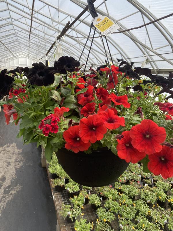 These beautiful 14" baskets feature a mixture of foliage and blooming plants specifically designed for either shade or sunny locations.  Begonias, lantana, vebena, petunias, geraniums, calibrachoas, sweet potato vine, osteospermums, lobelia and trailing coleus are key components of these lovely mixed baskets.