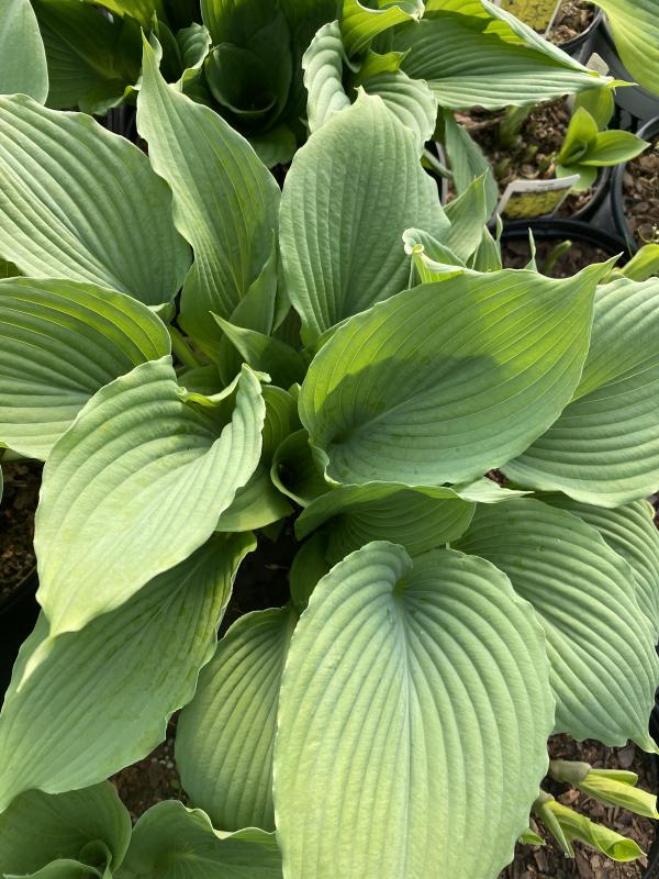 A big blue, vase shaped, hosta that has pointed heart shaped leaves with a rippled piecrust margin. Won “Best of Show” at 1997 National Hosta Convention. Pale lavender flowers. Long lived, easy to grow plants in filtered sunlight or full shade. Grows best in rich, moist soil but tolerant of dry shade. Smaller hostas can be grown in containers and shady rock gardens. Zone 3-8