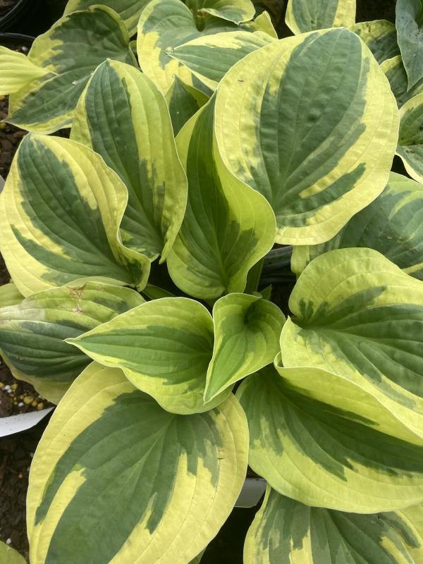 LEAVES HAVE DARK GREEN CENTERS AND YELLOW MARGINS. MEDIUM GROWTH RATE. EARLY THAT BECOME CREAMY WHITE. HOSTAS EMERGE LATE IN THE SPRING. TALL INFLORESCENCE OF PALE LAVENDER FLOWERS. TALL INFLORESCENCE OF PALE LAVENDER FLOWERS.