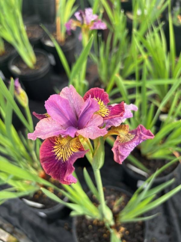 This sibirica iris of peacock butterfly series has tall clumping foilage.Miss apple has shades of violet,lavender,red,yellow,and gold colored blooms.Very attractive.plant with baptisia,silene,heliopsis,chrysanthamum,and yucca.