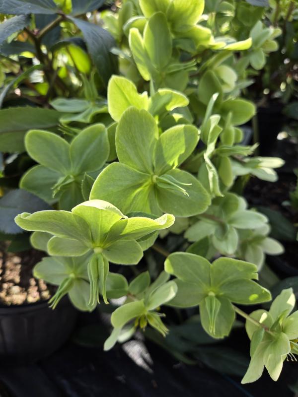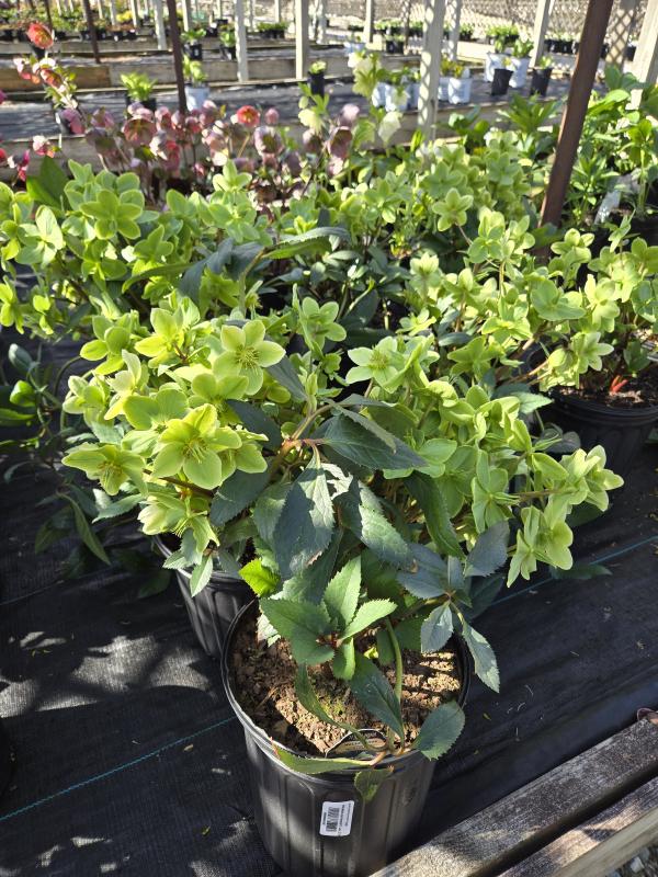 A interesting hybrid from Honeyhill Farms. Plants form a low evergreen clump of shiny blue-tinged leaves. A hybrid of H. niger and H. argutifolius.