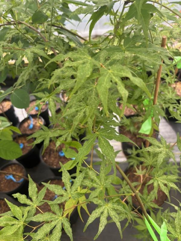 Ukigumo is a stunning white variegated upright Japanese Maple. Called "Floating Cloud" due to its cloud like appearance, the leaves rarely have a reversion to green once the white comes out on them. Young Ukigumo leaves are typically all green with the white emerging as they settle and their growth slows. The white can also get some pink to it. In fall, you get a whole new show with the leaves turning to a yellow-orange and pink before dropping for the winter.