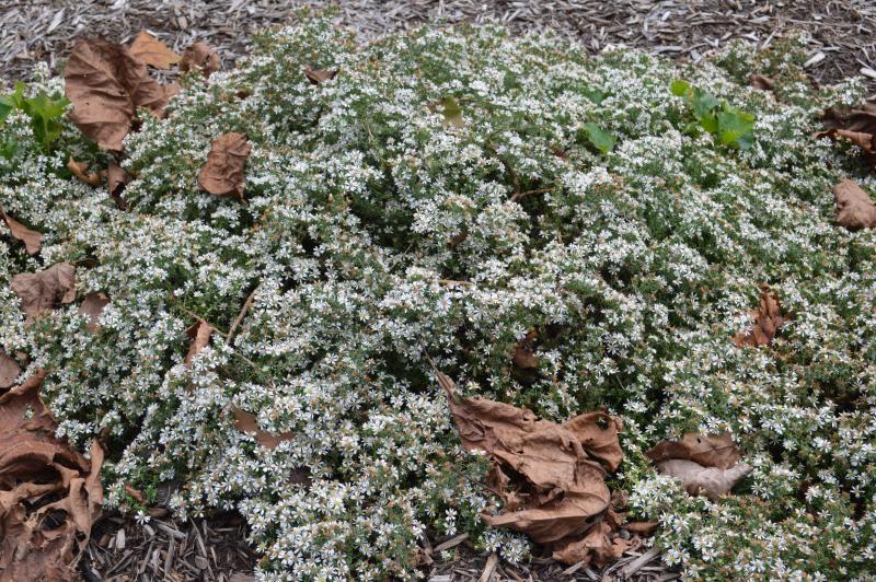 Low carpeting aster with white daisy flowers that blooms in late summer. Attracts butterflies. Trailing habit lends itself to fall containers. Drought tolerant, deer resistant. Sun loving plant in average, to dry, well-drained soil. Tolerant of drought once established. Zone 5-8. Bushy sunny border plant for dependable bloom in heat of late summer. Plant with ornamental grasses, heliopsis and anemone.