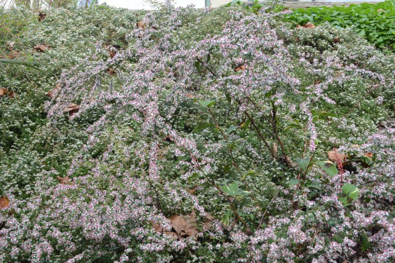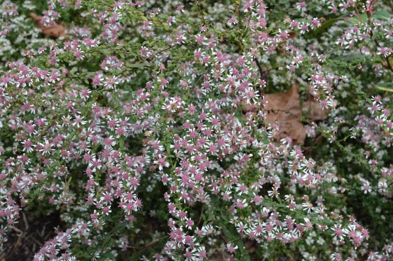 Statuesque, vigorous and easy to grow tall branching aster that has deep purple foliage and copious tiny white flowers. An excellent and unique cut flower. Full sun to part shade in average moist soil. Native over most of US. Zone 3-8. Good naturalizing or back of border plant for dependable mass of color, and foliage contrast in fall.attracts pollinators.