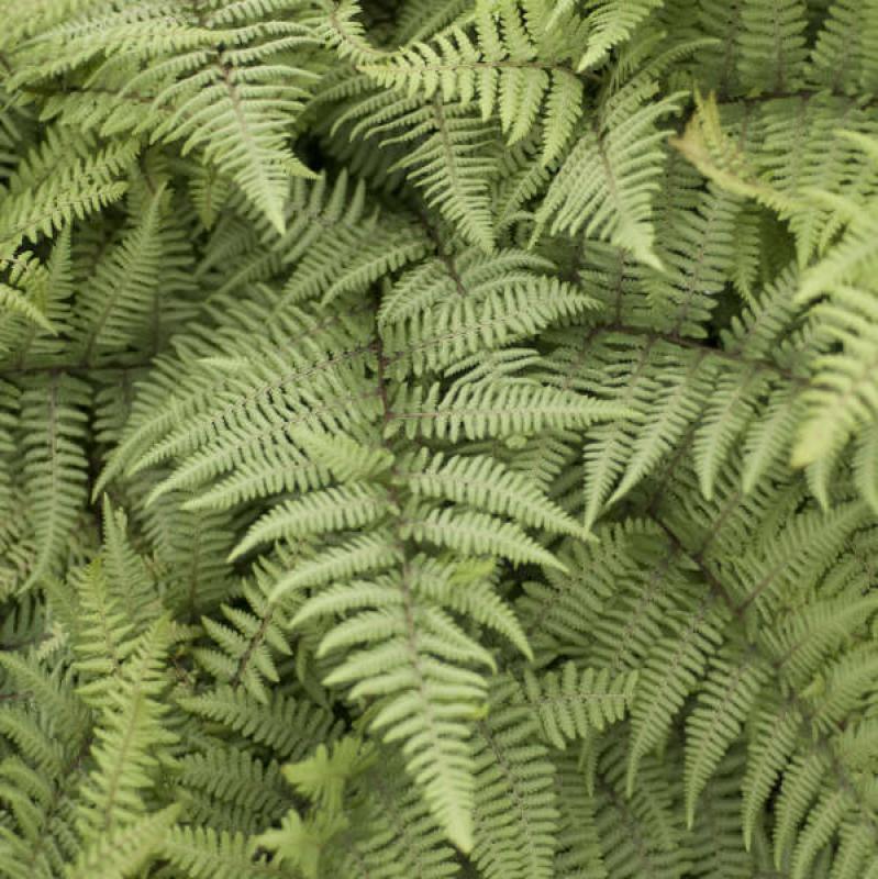 A cross between Japanese painted and southern lady fern. Stunning silvery white fronds that grow in a broad, tall, upright clump. Moist acid soil in part to full shade. Ground cover plant for shady or woodland areas. Naturalize around shady shrubs, and rocky areas. Ferny foliage contrasts well with hosta, asarum. and helleborus.