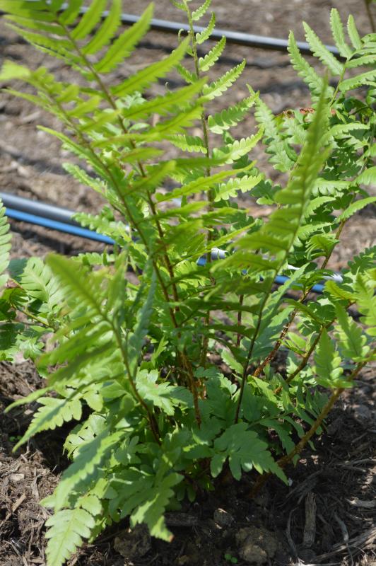 Tall, native naturally occurring hybrid, sturdy, easy to cultivate, deciduous, wood fern with nicely divided fronds. Superb garden plant, very winter hardy. Naturally found in cool, moist rocky woods. Great in garden cultivation. Easy to cultivate if given consistent moisture during establishment Zone 5-9. Use to naturalize areas with spring woodland bulbs, bleeding hearts, actaea, epimedium, tiarella, columbine, and uvularia. Plant in shady borders and as a groundcover for woodland shrubs.