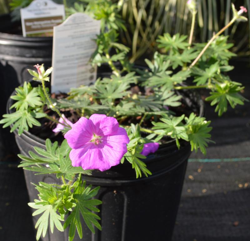 A rock garden geranium with mound-forming, small, deeply cut, gray green, divided leaves. Blooms on wiry stems. Light pink flowers have deep purple eyes and veins. Full sun to part shade in well-drained gritty soil. Should be placed in area of exceptional drainage like rock gardens. Will not survive winter wet. European native. Zones 5-9. Plant in dry rocky area with Dianthus, Armeria, Campanula carpatica, Gypsophila repens, Aubrieta, dwarf iris, and Phlox subulata. Deer Resistant.