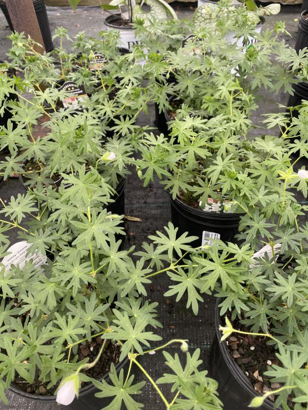 A solid performer, and great groundcover with its quick spreading habit, foliage that remains attractive throughout the season and its long bloom time lasting well into late summer. Evergreen. White flowers with hints of light pink. Easily grown in sun or part shade in moderately fertile, well drained soil. Zones 4-8. Geraniums have long been essential elements in herbaceous perennial plantings. Valued as groundcovers, middle border plants, and accent plants, They are easy to care for and free of pests and diseases. The varied flowering periods and variety of colors make them indispensable in planning a natural garden. Deer and Rabbit Resistant. Attracts bees and butterflies.