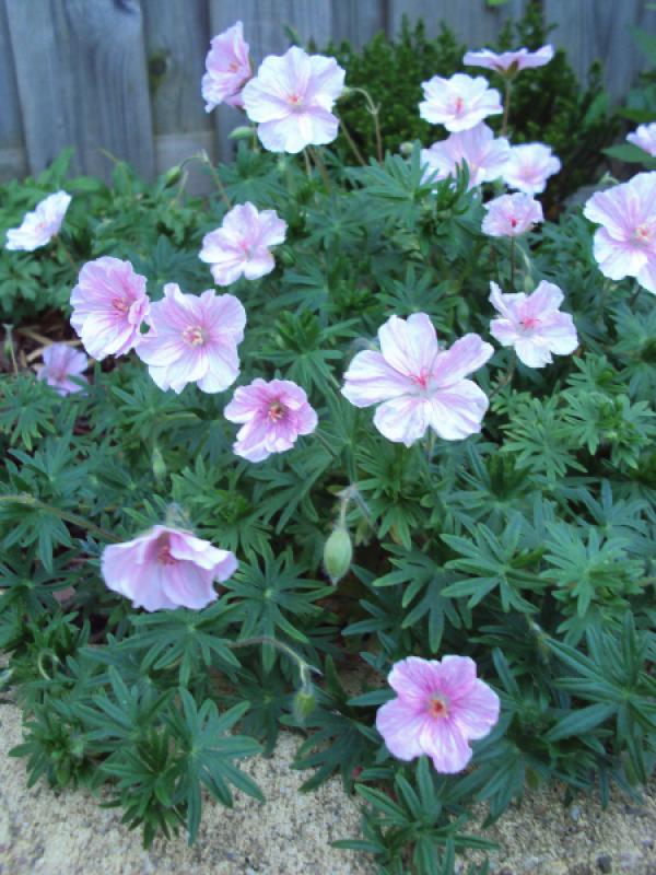 Easy to grow much loved.  Low-growing, mounding groundcover.  Cup-shaped light pink flowers.  Reddish fall colored foliage. Easy to grow in full sun or part shade in moderately fertile, well drained soil.   Zone 4-8. Geraniums have long been essential in borders and rock gardens. Valued as groundcovers, middle border bloomers, and accent plants. They are easy to care for and have varied and long flowering periods plus a variety of colors making them indispensable in planning a garden.