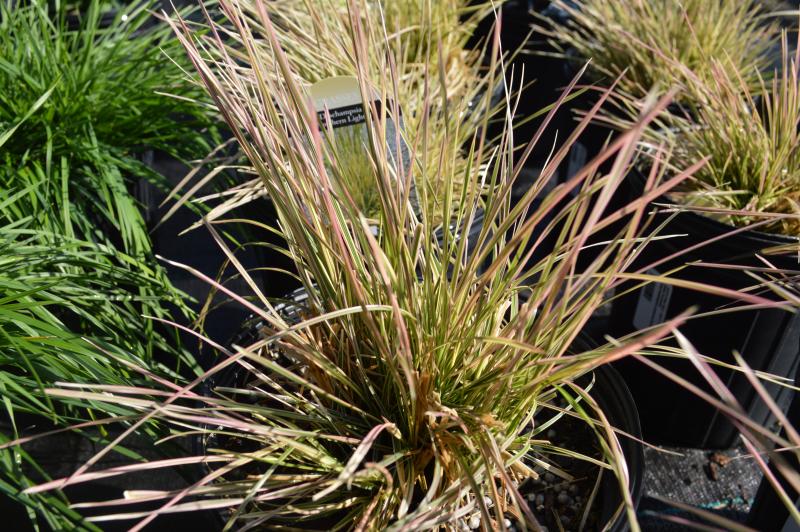 North American native that does well in shady spots. Gray and gold variegation distinguish this cultivar. Clump-forming cool season grass. Flower panicles give winter interest. Does well in average, well-drained soil in part shade. Will tolerate more shade and moisture than Miscanthus, Pennisetums, and Panicums. Will also tolerate drought. Native over most of the US. Zones 4-9. Great massed in woodland gardens or naturalized areas. Also good specimen with other shade loving plants like Heuchera, hostas, ferns, campanulas, and woods asters. Cut foliage to the ground in late winter. Tolerates Black Walnut, Air Pollution. Bird friendly. North American Native Selection.