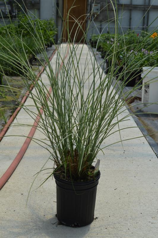 Fine textured leaves with white margins and a showy flower. This grass prefers moist rich soil. When they become large and floppy this is a sign that it needs divided. Zone 5-9. Use as a specimen in a border or near a water garden. Compliment with sedums, iris, hostas and groundcovers.