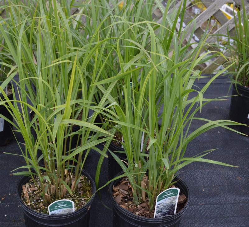 LARGE, TOUGH,SHOWY MISCANTHUS. LONG ARCHING LEAVES. LARGE BLOOMS HOLD WELL INTO WINTER. THIS PLANT HAS RATHER LARGE, SILVER BLOOMS. PREFER MOIST RICH SOIL IN FULL SUN. GOOD GRASS FOR WATER GARDENS.  EASY TO GROW, VERSATILE AND  ESTABLISHED PLANTS TOLERATE DRY CONDITIONS AND POOR SOILS. ZONE 6-9.