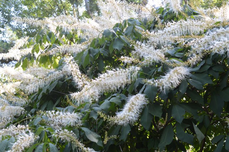 Native spreading multi-stemmed shrub with unusual palmate foliage and bottle brush flowers that bloom June-July. Forms mass of uniform shape with unique foliage and flower. Bottlebrush Buckeye has good erosion control and can handle wetter soils making it a good Zone 3 rain garden option. Also makes for a stunning specimen, and it works well in shrub borders or woodland areas.