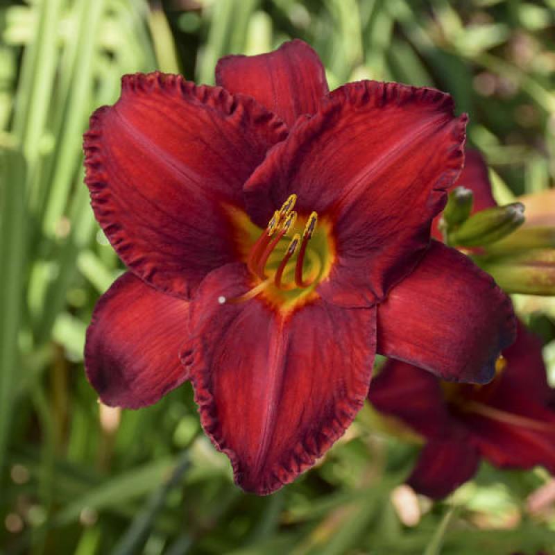 Plant forms a clump of green strap like, leaves and produces branching stems bearing multiple buds that bloom in succession and last for one day. Easy to grow and divide. Daylilies are tough and adaptable. Prefer rich well drained sites in full sun or light shade. Not picky about soil except dislikes boggy sites. Excessive shade will reduce blooming. Division every  3 - 5 years is recommended.  Zone 3-9. Used widely in mass plantings, on banks, with shrubs, as a speciman plant in ground covers or in the perennial garden. Compliments many other plants and a reliable summer bloomer. Plant with yarrow, belamcanda, baby’s breath, coreopsis, asters, ornamental grasses, iris, and dianthus.
