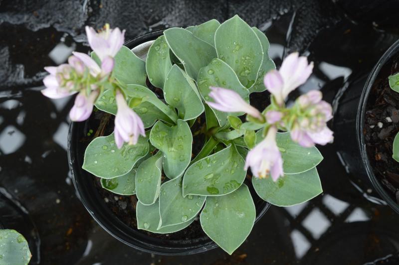 A mini hosta with small round gray green leaves that are thick in substance and cupped. Cute and little with flowers on short scapes. Great mixed container hosta. Easy to grow, long-lived plants. They perform best in a shady spot with evenly moist soil, but will do well in a shady dry spot if well mulched. Zone 3-9. Mini and small hostas are perfect as border plants along paths or when you need to fill a small space in the shade garden. They thrive in dry shade even in competition with tree roots. Great plants for troughs and patio containers placed in shady areas.