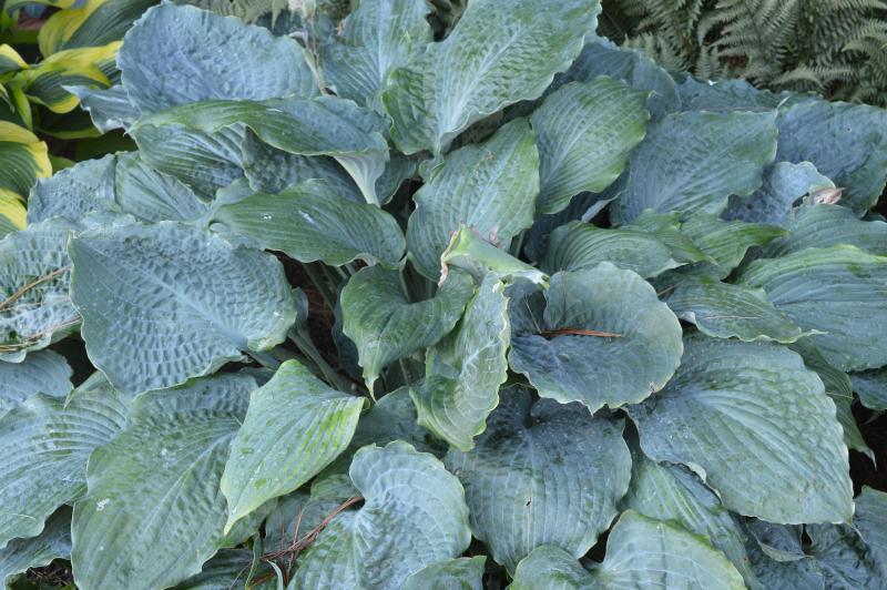 This blue Hosta has attractive, heart-shaped, thick, and corrugated leaves with wavy margins. The leaves can get up to 9 inches wide by 11 inches long. Long lived, easy to grow plants in filtered sunlight to full shade. Grows best in rich, moist soil but tolerant of dry shade. Smaller hostas can be grown in containers and shady rock gardens. Zone 3-8.