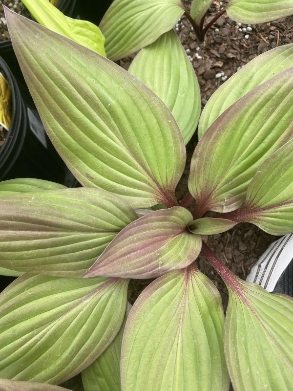 A red leafed hosta developed by Bob Solberg. It has red petioles. In the spring, the leaf between the veins will begin to “blush” red from the tip of the leaf down toward the base. Long lived, easy to grow plants in filtered sunlight to full shade. Grows best in rich, moist soil but tolerant of dry shade. Zone 3-8.