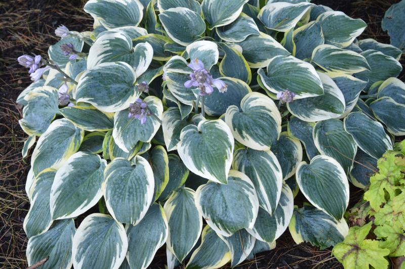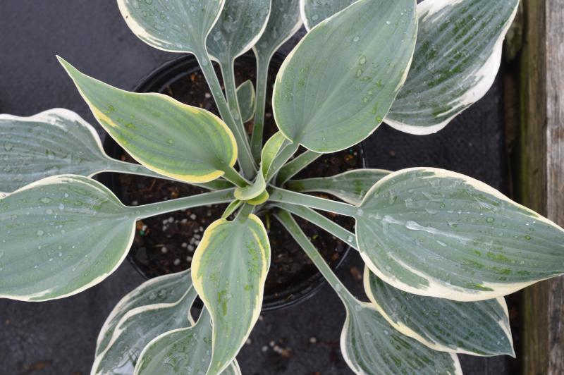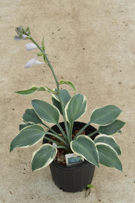 Medium hosta with good growth rate. Foliage emerges blue with gold margin that changes to a creamy white margin as leaves age. Plant looks great right up to the first frost. Easy to grow, long-lived plants. They perform best in a shady spot with evenly moist soil, but will do well in a shady dry spot if well mulched. Once established plants keep themselves weed free. Zone 3-9.