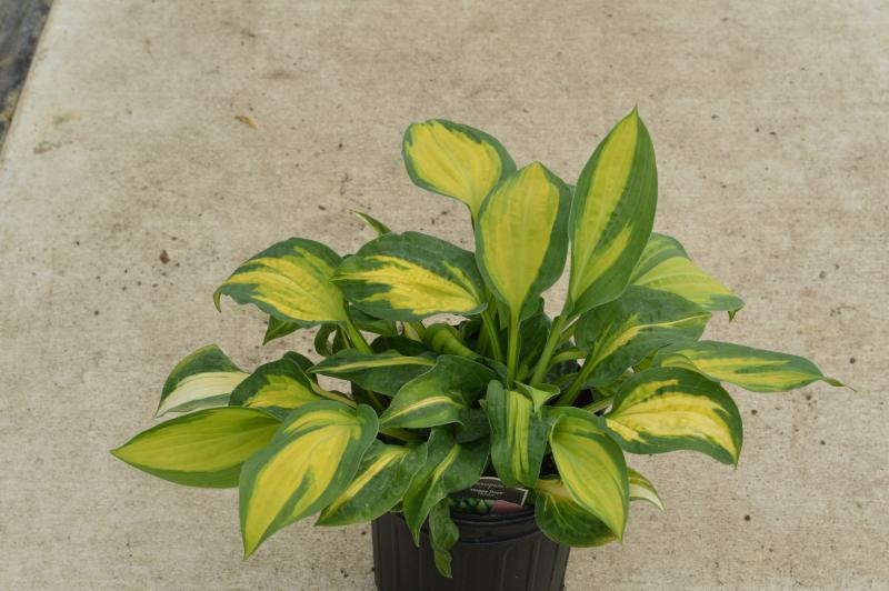 This brightly colored hosta livens up the shade garden with its sharply contrasting variegation.  Leaves of good substance have yellow centers which brighten to parchment and margins that turn dark green in summer. Long lived, easy to grow plants in filtered sunlight to full shade. Grows best in rich, moist soil but tolerant of dry shade. Smaller hostas can be grown in containers and shady rock gardens.