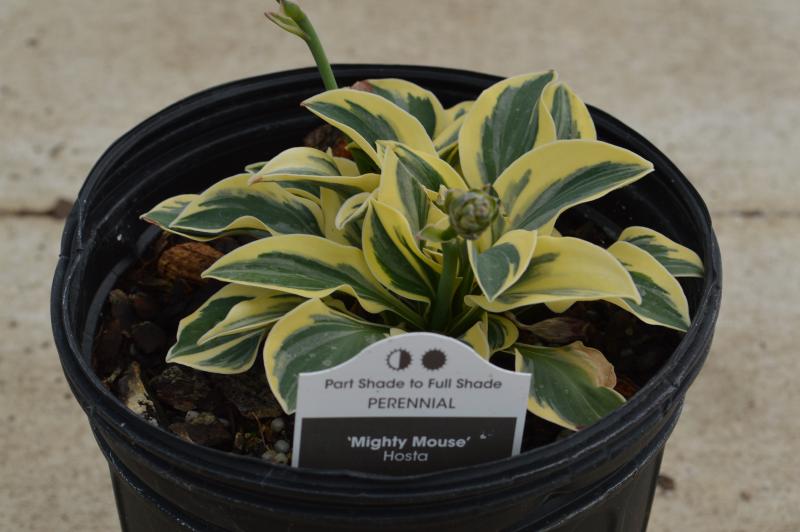 The rounded leaves of heavy substance are blue-green with a bright creamy yellow margin. In summer the leaves transition to grey-green with a creamy white margin. Easily grown, long lived plants for a wide range of environments although they grow best in rich, moist, but well drained soil in light shade. Zone 3-9.