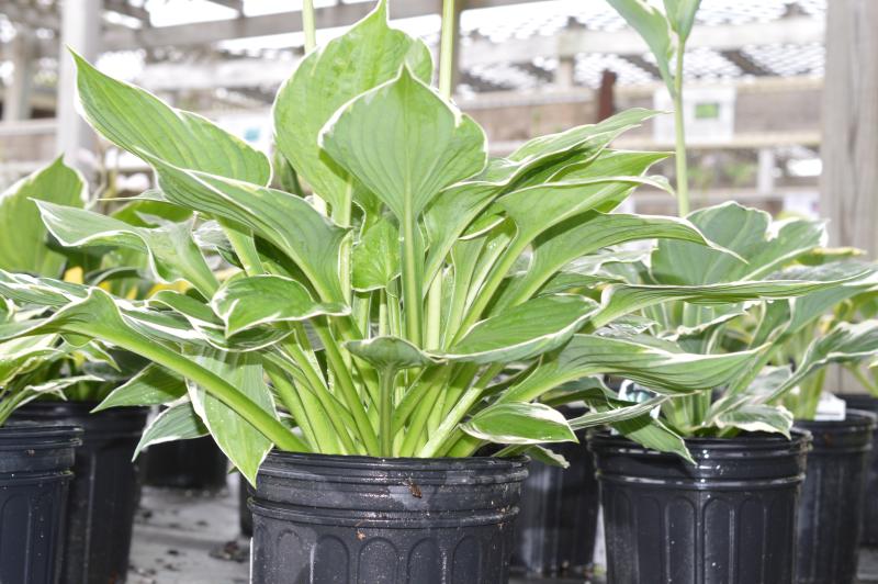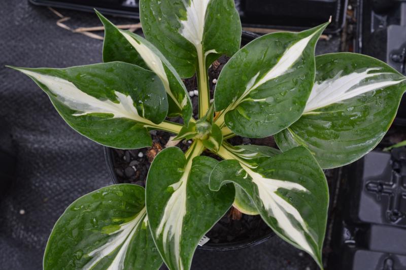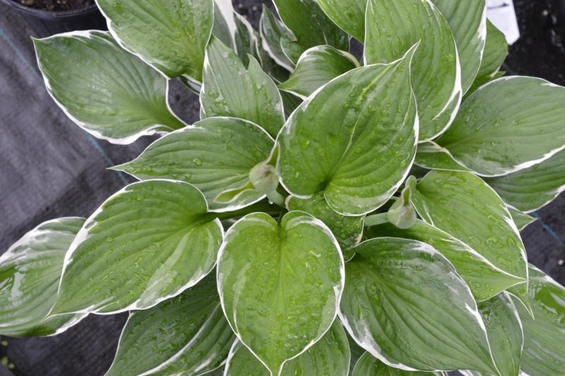 Like ‘Patriot’, ‘MM’ is a sport of ‘Francee’ with a heavier substance. Leaves are more cupped and have a darker blue green center, with a wider creamy white border. Long lived plants. Grow best in rich, moist, but well drained soil in filtered sunlight. Mixing an abundance of organic matter into the soil when planting and then mulching over the years keeps hostas looking their best. Water during periods of drought and protect from slugs. plant smaller hostas in shady rockeries and containers.