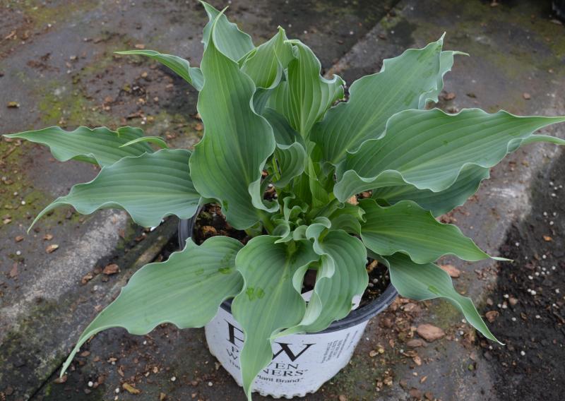 Blue, rippled wavy leaves look like water splashing in the shade garden. This hosta holds itβs blue color well into the summer season. Long lived plants. Grow best in rich, moist, but well drained soil in filtered sunlight. Mixing an abundance of organic matter into the soil when planting and then mulching over the years keeps hostas looking their best. Water during periods of drought and protect from slugs. plant smaller hostas in shady rockeries and containers. Zone: 3-9