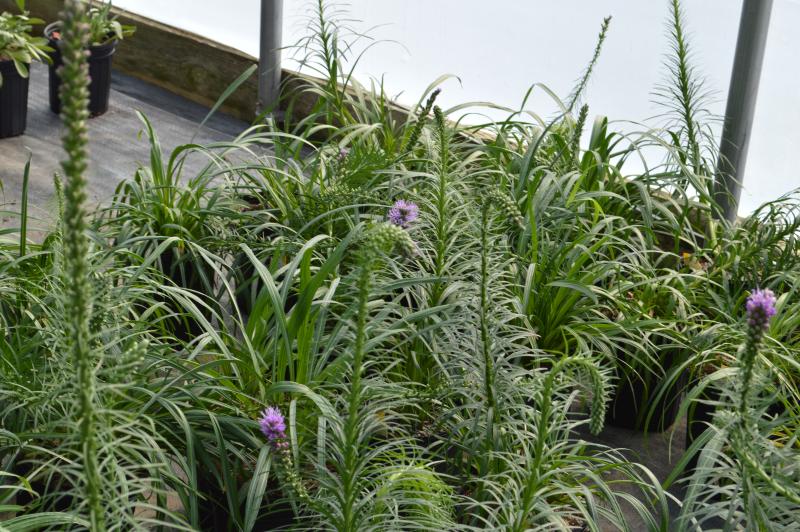 Native prairie plant. Grass-like foliage forms a clump with tall flower spikes in the summer. Flowers open from the top down. Great cut flower. Average to rich, well-drained but moist soil in full sun. May need staking if in a windy spot. Zone 3-9. Great for butterfly gardens, or naturalized meadows. Pair with yarrow, daisies, echinacea, phlox, ornamental grasses and artemesia.