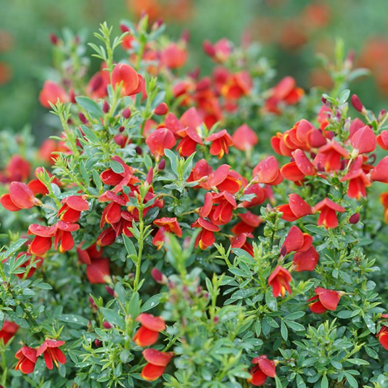 With dramatic and fragrant blooms of vibrant red and just enough yellow to make the red even more striking, this plant, along with its uniquely tiny leaves, offers bold color and texture to the landscape. Nice specimen in the shrub border or back of the perennial border for color.