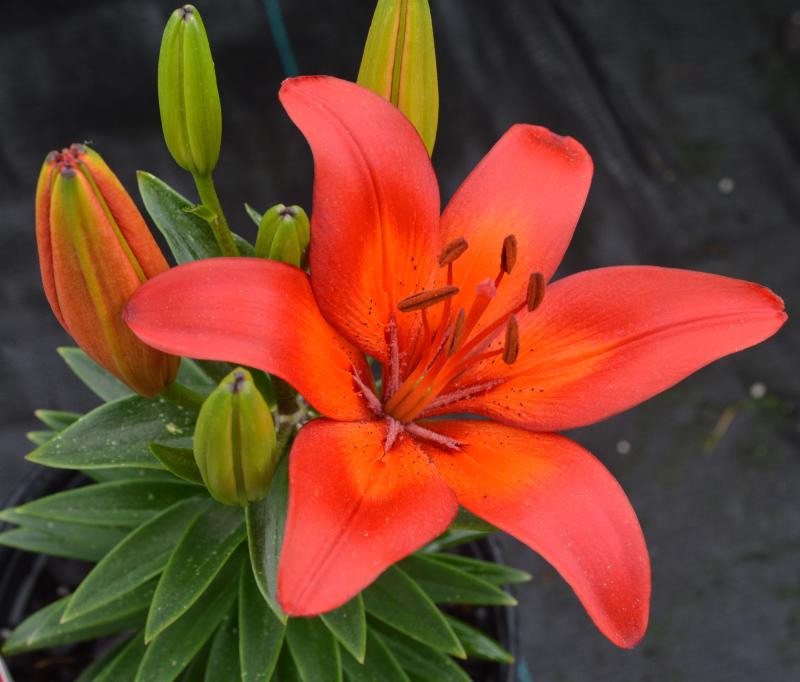 Showy flowers with intense fragrance grow from bulbs of overlapping fleshy scales. Flowering stems bear whorled narrow leaves with several flowers and buds at the top. Great cut flower. Good container lily. Part shade or in a cool sunny spot. Plant bulb at least 4 inches deep in moist, rich, acid, well drained soil. Can be left undisturbed for many years and allowed to multiply naturally. Plant in a part shady border in groups of three or more. Intense bright color for the shady spot. Plant with hosta, astilbe, ferns, lobelia, and chelone. Plant among groundcovers as a natural specimen plant. Attracts butterflies and hummingbirds.