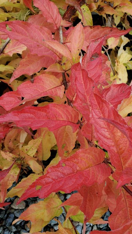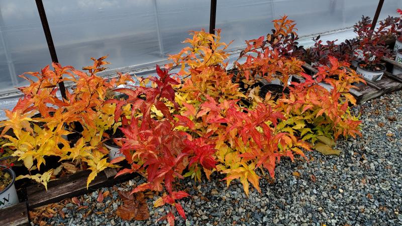 Foliage is bright, neat and well branched and the new growth is a copper-red color that transitions to a light green. From May - July, rich yellow flowers are held in upright clusters and fall ushers in brilliant orange fall color! Tolerant of a wide range of site conditions. Effective as a border, to fill a large difficult sites, and makes for an excellent ground cover.