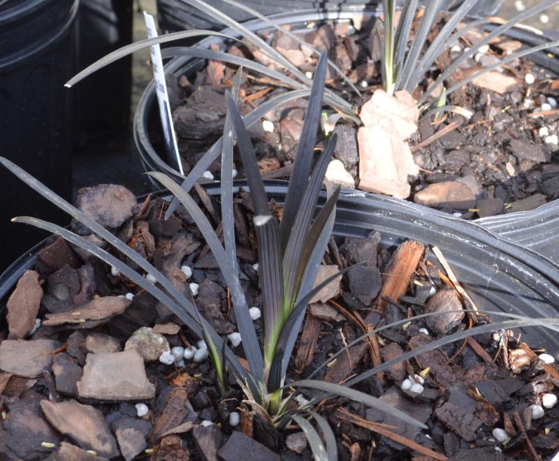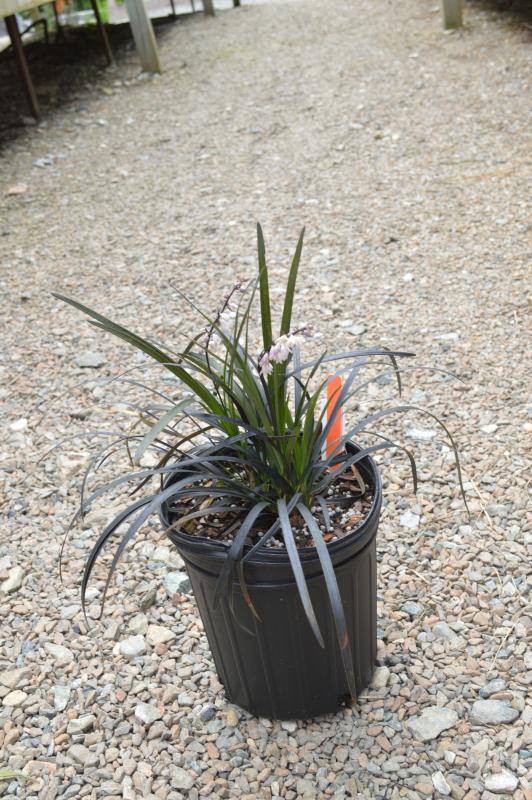 Grown for its distinctive dark purple almost black grassy leaves. Great contrast foliage plant, forms slow growing sparse clumps that bear clusters of lilac flowers followed by black berries. Plant in moist but well drained soil in partial shade. Slow to establish but in two years will make a good groundcover or edging plant. Dramatic in combination with gold hosta and lysimachia nummular