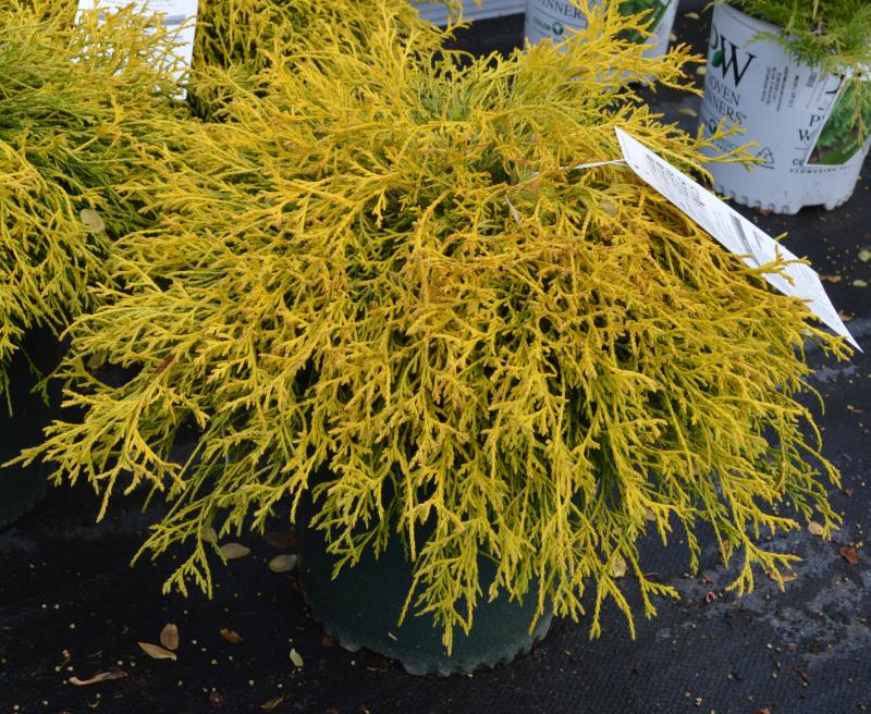 Fine textured, fluffy/wispy bright yellow-green foliage forms in sprays on this mounded, dwarf shrub's weeping branches. Guaranteed to bring unique texture and fun evergreen color to your space whether it be as a specimen, or in borders, screens, or hedges.